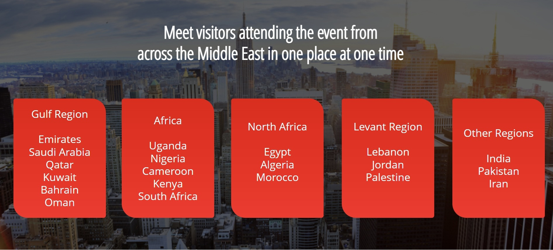 Attendees attending the event are decision makers, owners and executives from: wholesalers, bulk distributors, importers, trading companies, and more from the Middle East region, Africa and other regions.